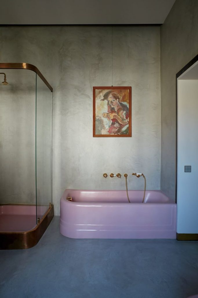 The base colors I knew would be in some of the main areas—like kitchens, hallways, and in this case, the bathroom. The dream colors would be bold statements, color-drenching entire rooms and mixed with wallpapers.