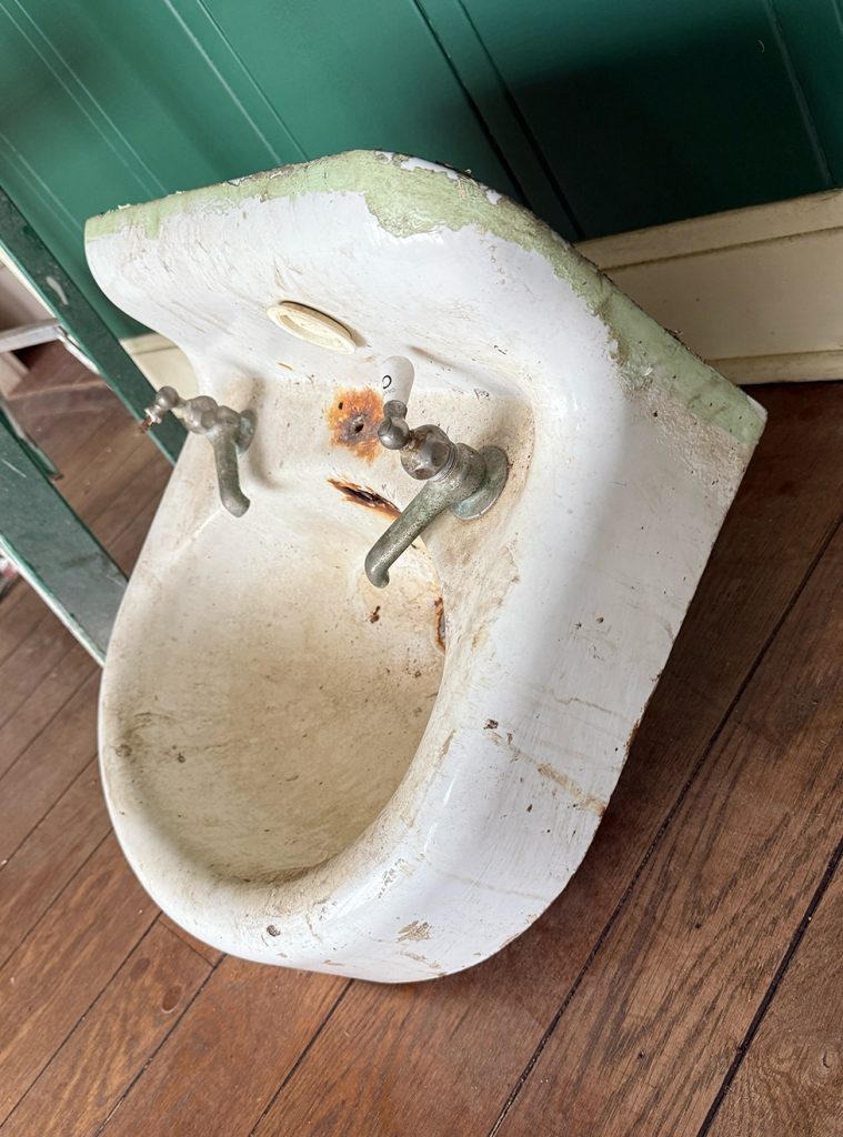 Another vintage gem we felt was worth rescuing was the little sink from the original cottage/garage space. Here’s where/how we found her…