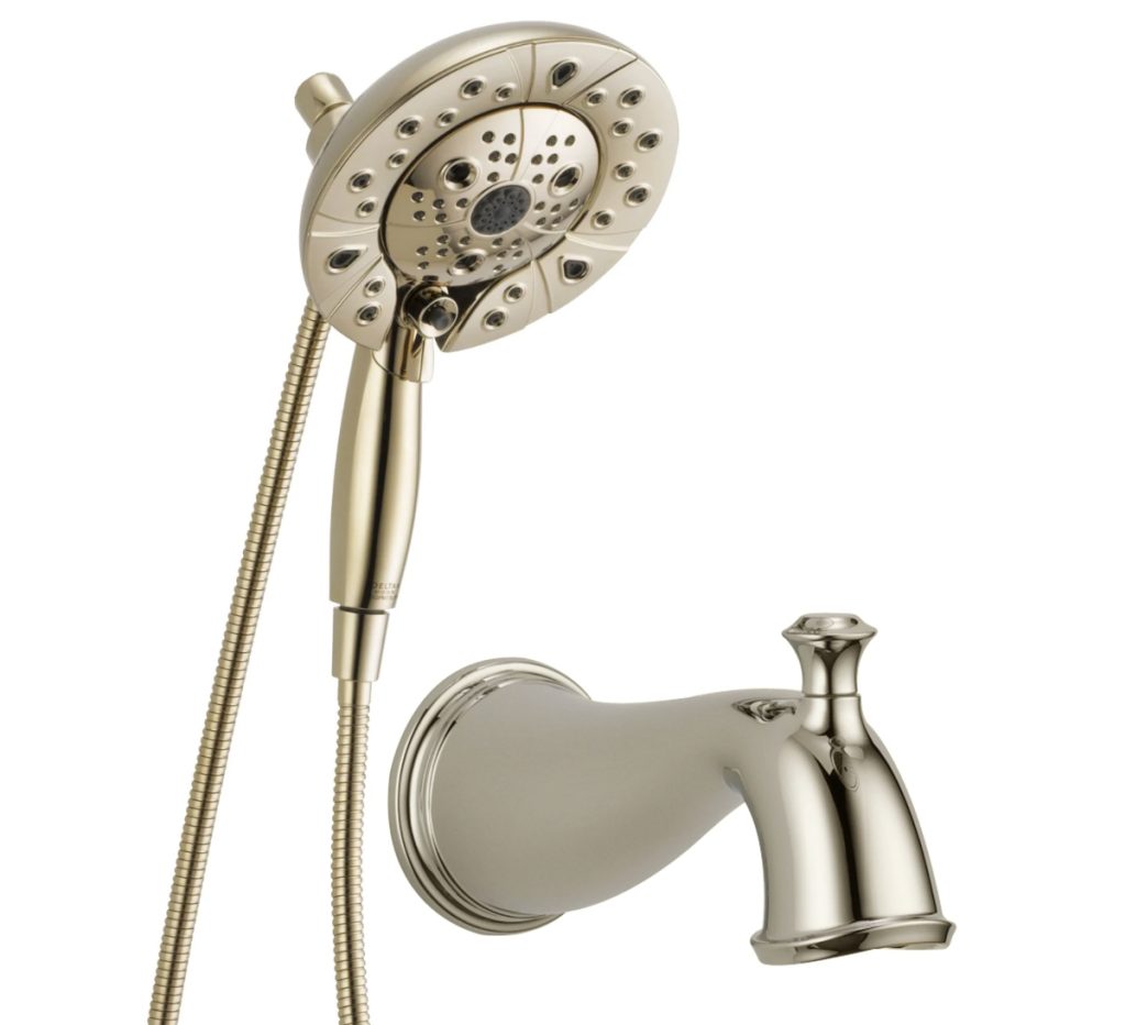 We went with polished nickel for our fixtures, which still had a little warmth and worked well with the brass accents.